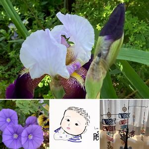 5月5日子どもの日🎏 孫娘が長男の赤ちゃん(6ヶ月)をスケッチしてくれました 切り絵教室の鯉のぼり! 早く、こんなふうに上手くなりたいです😆😅 お花は庭のジャーマンアイリス、コンボルブルスです🌱