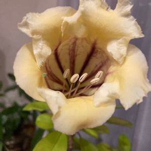 昨日、開花したソランドラロンギフローラ 一日中外出して部屋も真っ暗だったので 残念ながら大きく開花ならず😅 それでも、咲いてくれてありがとうです😊 和名は、長ラッパ花🌿