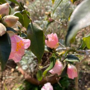 庭の雛侘助咲き始めました🌱 可愛いピンク色の椿です 恥ずかしがりやさんみたい!