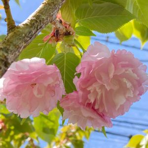 わが家のもうひとつの桜"紅華"です 葉っぱに隠れて咲いている可愛い子ちゃんです🌸