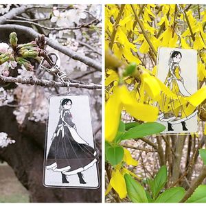大人の着せ替え人形🏷 お散歩ちゃんキーホルダー🏷 メイドスタイル🏷 餅子のお散歩ちゃん🏷 この写真だけのも投稿させて頂きます🌸 桜の背が高くて なかなかうまく撮れませんでした😅