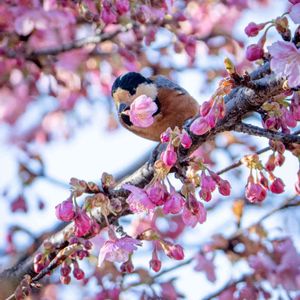 河津桜が咲き進んでいます。ヤマガラが遊びに来て花車を見せてくれました。 『花車 拍手喝采 ヤマガラや』2023.02.15.撮影