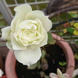 おはようございます、ブライダルホワイトやっと咲きましたネキリムシにやられたので何か小さくなった感じ でも嬉しいです