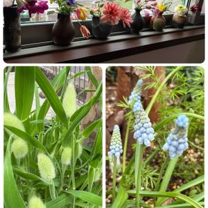 メラレウカ・レッドジェムを少しばかり剪定したので 保存していたリューカデンドロンと昨年のラグラスのドライとざっくりとですが組んでみました レッドジェムさんは我が家にお迎えして5年くらいになります ラグラスは4年前から毎年種蒔きして育ててます こぼれ種であちこちから お顔を出してくれるので ガッツリ撒いた鉢は 今年はひと鉢です 今年は遅め? 昨日、やっと穂が見えだしました🙆 やっぱりかわいい 😳❣️ポッ