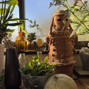 おはようございます🌤️→☀️ 10月最終日🎃 笑顔の1日でありますように🤗 【追記】 pic1 今朝の玄関。頂いた白カボチャがあったので手抜き🎃😅埴輪は長女が小5の夏作成 pic2 pic1の↙️の位置のアップ🤳サツマイモ🍠の水耕栽培 pic3 ローラ pic4 ラウリンゼ pic5 七宝樹