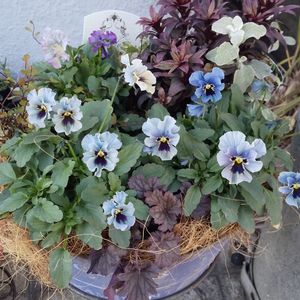 こちらは昨年末saleの苗たち✨で作りました。 ネットで買ったブリキの鉢なんですが、空いているはずの底穴が空いていなくて、穴を空けるのが1番大変でした💦