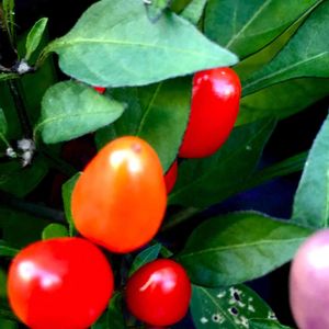 植物図鑑で名前を調べようとアップ。しかし、この写真ではさすがのAIでも手強かったようです。こちらのコメで一年草の観賞用トウガラシと判明。ありがとうございました。