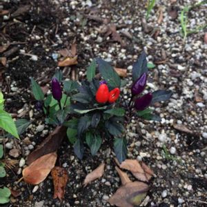 道路に咲く鑑賞用トウガラシ 毎年ここに根を張っているんだろうなぁ(*^_^*)