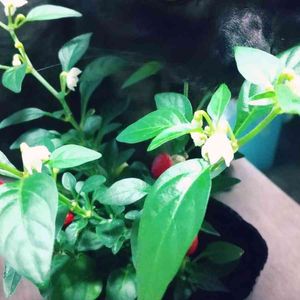 また小さい白花が咲いてます🤍 何回も咲いてます🌼🌱 花は小さいけど 立派な木のようにシッカリとしています。 9月8日にお迎えした鑑賞用トウガラシさん