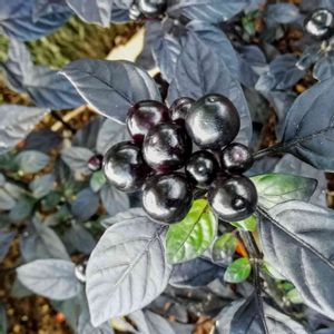 鑑賞用トウガラシ ブラックパール つやっつや✨ぴょこんと出た緑の葉もアクセントですね🍀 📷10/18花菜ガーデン