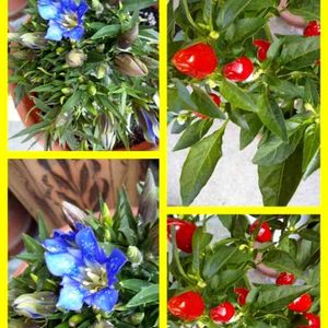 おはようございます💠 今日朝は少し😃✨ リンドウと鑑賞用トウガラシです💙 可愛い💠💞
