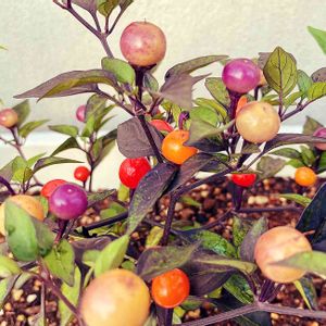 こんにちは😊 今日は涼しくて過ごしやすい一日になりそうです(*ˊ˘ˋ*)。♪:* どれもおいしそうでしょ😋 でもどれも食べれません😅 ◀️二年目の【パープルクランベリー】さん💜 ↗️こぼれ種から毎年実がなる【鑑賞用トウガラシ】さん💛 ↘️姉の所からお嫁に来て4.5年になるかなぁ🤔まるでミニトマトのような【タマサンゴ】🧡さんフユサンゴとも呼ばれています🧡