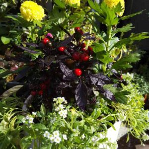 出掛けた帰り大雨でしたが、気になってたできたばかりのお花屋さんに寄ってしまいました。 鑑賞用トウガラシ パープルフラッシュに一目惚れ❣️欲しかった黄色いハイビスカスさんも一緒に(*^^*) パープルフラッシュさん、皆さんのpicを見てみたら紫の丸い実が付くようです。 どちらもこれからが楽しみです(ㅅ´ ˘ `)♡