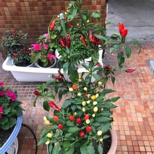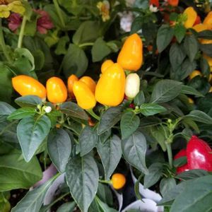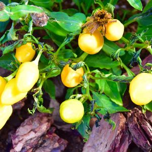 直射日光がつよすぎて、いじってみたけど色味と質感が再現できない。真っ黄色のツルツルで、プラの作り物みたい😊 自己解決…観賞用のトウガラシみたいですね。