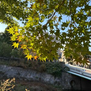 こんにちは😃 晴れ☀️ 今日のお花 イロハモミジ 10月末のモミジ。 葉っぱの先っちょ、ちょっとだけ 赤いね。 もう一枚はご近所さんの🍁 5月のpicです。