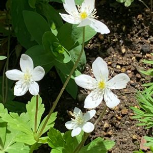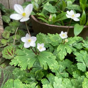 こないだニリンソウが咲いて3個咲いてる株が2つ並んでたのでパシャリ♪ 今年は土やり直さないとダメなんだけど絶えちゃわないか心配〜 (_ _。) 住宅地だと難しい花だよね