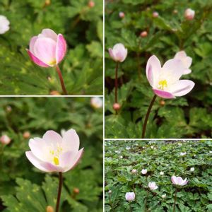 こんにちは(๑•ᴗ•๑)♡ 今日は、☀️🍃15℃! ちょっと曇って来て、温度下がりました。💦 今日の庭で〜す。🥰 左上から、ニリンソウ! 🤍色のキリンソウ! 新緑のモミジ! 銅葉のクロバー! しばらく、庭に出ないうちに、皆様、成長してました。🥰 ウン♪(,,^ᴗ^,,)🐱🐾