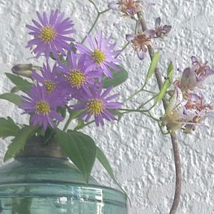 ノコンギクを一輪、タイワンホトトギスと共に、お出迎え花に… 🏷愛しの紫