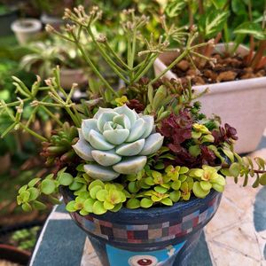 目玉のおやじ鉢の寄せ植えが元気です🎵 (*^▽^*)✨ 今月もよろしくお願いします❣️🙇💞