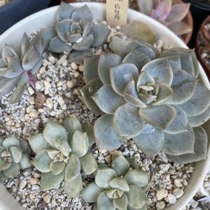 この寄せ植え 夏場はベランダ日当たり悪い為ベランダの柵側に正面を向けてピッタリくっつけた状態で、私からは全く見えない状態だったので、久しぶりの正面側との対面を4ヶ月振りに果たした コゲ落ちてるか、はたまた溶け落ちてるか、どちらにせよ綺麗なままではありますまいと覚悟してたんですが… 何という事でしょう…ブロンズ姫と白牡丹が見事に可愛くなっていた悲しい結果の子が多い中、めちゃくちゃ嬉しい☺️ 植えた直後から調子良く育ってた2種だったんだけど お陰で、メインのはずだった桃太郎の影が薄っ!!どっちがエケベリアか分からん(笑) 可哀想なくらい