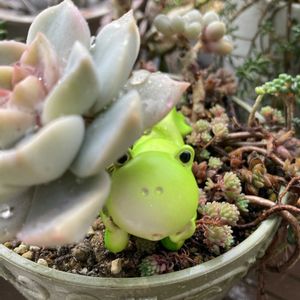 今年の夏は、普段強い子達が早い段階でジュレたりした 白牡丹もそのうちの一種 丈夫で葉挿し率も高くよく増えて更にかわいい❤️に定評のある白牡丹が…子供達はバッタバタジュレた ((((;゚Д゚))))))) 1pic このティーポット寄せ植えの白牡丹 は、何とメインでセンターをはっていた1番大きな古株がジュレた😱 古株だからと油断してザブッとやったのがまずかった 全滅するかと思いきや… その後は水やり控えたので無事でしたが、好きだったバランスが崩れてしもた リーダーが抜けその空いた穴を最近新人に埋めて貰い、何となくまとまってきたかな…💧カエルも戻ってきたし まぁ…春にセダムが盛りってきたら可愛くなるでしょう。 3〜5pic はい!あの棒になったラブリーローズ チョンパして茎だけになった方に 毎日必死に水と念を送り込み、願いが届き1ミリの芽を出して…棒ローズの新たなstoryが始まりました。 ォィォィ( ˊ̱˂˃ˋ̱ ) そう(☝︎ ՞ਊ ՞)☝︎!!あの日の棒ローズです(5pic参照) 希望の「棒ローズちゃんカワイイカワイイ🩷」と、当時もてはやされたものでしたが(いや、主以外誰ももてはやしてなどいませんが) 最近うちでは 希望もローズも取っ払い棒の字すら危うい、ただの「ボーズ」呼ばわりされています 全くどうでもいい情報ですみません。 4picの後ろ姿ウケるんですょね🤣 超絶イナバウってて😂