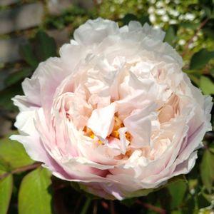 今日の庭から 我が家の牡丹が初めて咲きました☺️ なんと、白い花でした。 いやピンクも混じってますけど🤭 いやぁ、叔母のところからなんだかわかないままやってきた鉢でしたが、2年目で咲いてくれました🙆 これからは、もっと大切にしようっと✊