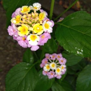 おはようございます🍀 雨☔が降る中 ランタナの花🌺が咲きました 4月に挿し穂して根付いた ランタナです😍 愛くるしくて大好きです😍