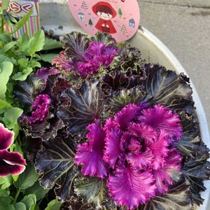 1️⃣葉牡丹赤ずきん 名前がかわいい🩷 ツヤツヤの葉っぱが魅力的✨ 2️⃣小輪パンジーと寄せ植えらしき ものにしてみました😄