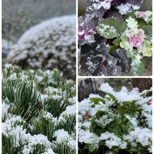 おはようございます😊 主人にいわれてびっくり‼️ 雪ふっとおぞ💦 えっ(;゚Д゚)!⁉️ カーテンあけるとうっすら雪化粧⛄️ 我が家の庭木 五葉の松🌳 パンジーきもの🌸 葉牡丹🌸 パンジー🌸 きのうお出かけ先のパーキングエリアのお花🌸 今日は寒くなりそうです🥶 ⸝⸝💦 あたたかくしてお過ごし下さいね💦 🏷白い貴婦人✨️ 🏷木曜日は木 🏷オジさん顔ビオラ・パンジー 🏷ビオラ・パンジー祭り♪ 🏷びっくりポン‼️ 🏷一般ジーの会♪ 🏷白輝美人 🏷心にメローイエロー 🏷太陽がくれた季節a 🏷花の子ルンルンー そのほか色々🏷付けさせていただきます💕 今日は木曜日😊 あたたかくしてお過ごし下さいね💕︎