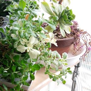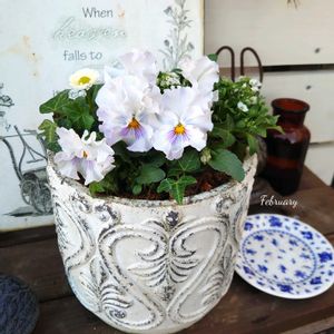 パンジーきものを使った小さな寄せ植えを作りました。全部ホワイト系にしてみたので爽やかな雰囲気です☺☘️