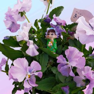 花友さんからいただいた種から 私好みの素敵なお花が咲きました。 パンジー "きもの" 🤍でしょうか? なかなか大きくならなくて心配でしたが 振袖👘のイメージなのかな? pic④ 他の色も、もちろん素敵です💕
