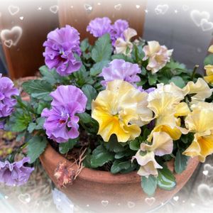 1️⃣やっと咲いた最後の種蒔きっ子 フリル咲きパンジーきもの👘 色幅があるのかな〜🤔 2️⃣神戸ぺっピンさん もう少しべっぴんさんだった 気がするんだけどな〜😅 3️⃣フリンジパンジー カーリーウィッチ 大分モリモリになってきました🪴 4️⃣メゾンドビオラ公爵令嬢 沢山咲いてきたら可愛い💕