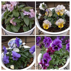 今日のお花 パンジー💕 先日見切り品でお迎えしたパンジーきもの💜 ②ミニパンジーエール17 ③ブルーラビット ④なごみももかとんとん ⑤名無しさん ②〜⑤は昨年春のpicです