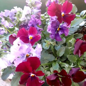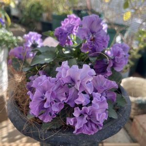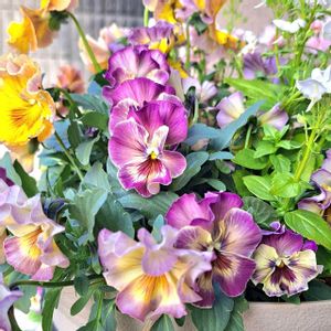 日差したっぷり.⋆*🔆 パンジーきもの👘がワサワサにꕀ❀✿❀ ビオラアイクルールが押され気味です(◍˃̵͈̑ᴗ˂̵͈̑)ァ,、