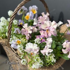 おはようございます。 今回はカゴに寄せ植え してみましたぁ〜。🤗 どうでしょう? 本人たのし〜く寄せたので おおめに見てください。(*^-^*) 両脇の長いグリーンさん名 少し自信ないです。 あと葉牡丹は、人生初購入しました。 鉢に寄せたのは、 先日お迎えした ビオラのティアードさんです。 鉢いっぱいにモリモリに なってほしいなぁ〜 ܾ ܾ 𖥧𓇣 ܾ ܾ ܾܾ ܾ 𖥧𓇣 ܾ ܾ ܾ