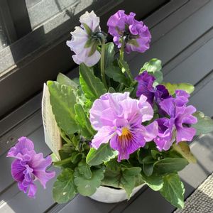 今年は400円以上のビオパンを購入していません。 これは贅沢におひとり様植えになっているフリルパンジーの「きもの」です。 そんなに飛び抜けて珍しい顔つきでもありませんが、和風の名前でタグも和風の雰囲気で珍しかったので。 沢山咲いて楽しませておくれ〜💕💕
