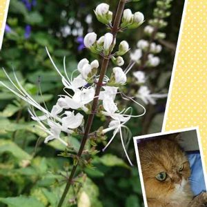 3年目のネコノヒゲ🎵去年より1ヶ月も遅い開花(^_^;) 今日も暑いから朝お風呂に入って可愛い子ぶりっ子のじじぃ😼ココのヒゲ(*^.^*)