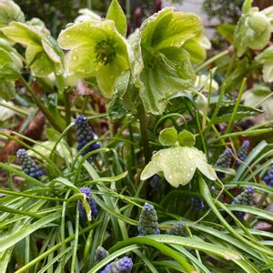 ムスカリが日に日に可愛くなっています ܾ ܾ 𖥧𓇣𖦥𖥧𖥣 奥にうっすら顔出したのは… ハナニラのお花♡一番のり(笑) これからハナニラだらけに🤣🤣🤣