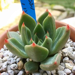 おはようございます☀ 最近の暑さでバテ気味ですが我が家の多肉ちゃんたちどうにか頑張ってくれてます💦 ザラゴーサとチワワの交配❤️ ぷくっと肉厚でコンパクトなロゼットがとても可愛くて赤爪が魅力的(*´꒳`*)