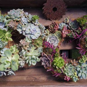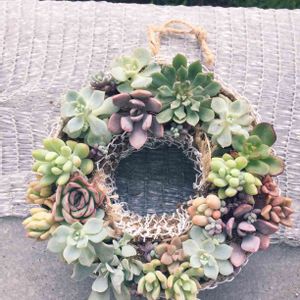 初リース💕リースって多肉たくさん必要ですね〜。小さいサイズですが、足りない足りない😅あとはモリモリしてくれるのを待ちましょう。