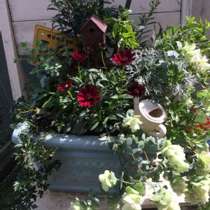 おはようございます😊 春に作った寄せ植えをリニューアルしました🍀 メインを甘い香りのチョコレートコスモスにして🍫❤️ オレガノケントビューティの暴れ具合がいい味出してる(*^^*)
