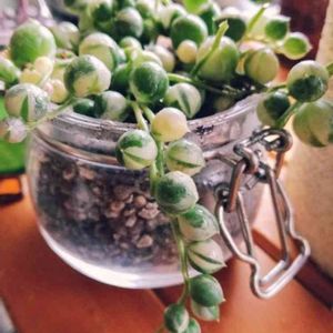昨日ふらっと寄った園芸店に 前から探してた 斑入りのグリーンネックレスを見つけました~✨ かごに誰かが入れてるの見て「それどこにありました❗❓」「前から探してたんです❗❗」とつい興奮して見ず知らずの人に話かけてしまった☆笑☆ しかも安くてびっくり❗❗ 良かったぁ~✨ 気付かず出て行く所だったよ~ ... 色合いがとっても可愛いです ゚・✿ヾ╰(*´︶`*)╯✿・゚:✲:~