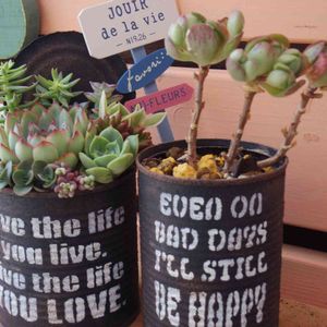sweetbasketさんのリメ缶に植えました😊🎶 ペロン缶には寄せ植え💕 もう一つにはアドニス💕 またまたお気に入りが出来ちゃった😄 sweetbasketさんありがとう❣️ 出逢いに感謝🍀
