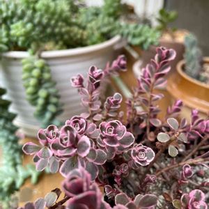 最近、子持ち蓮華を投稿してる人が多い気がするから私も~⤴️ 冬に数が減ってしまったけど可愛いから許す❤️ランナーがたくさん出てるから増えるかなと期待😃✨ 本当は斑入りなんだけど、殆んど先祖返りしてしまった💧 たまにゃんの苔が枯れてしまったのでお遊びで子持ち蓮華を咲かせてみました🎵