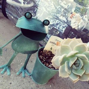 徒長してたラブリーちゃん♡ カットしてから数日経ち発根確認👍 リメ鉢に植えました♪ カエルくん(Θ-Θ)見守っててネ💕