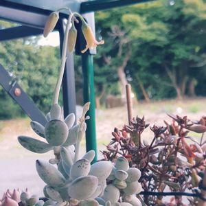 我が家の古株さん🪴ビアポップ ボロボロ落ちるので移動禁止🈲 黄色くなってる所もあるし、いちかわふぁーむさんの動画見てたらカット✂️したくウズウズ😆 でもカットして挿したら置き場所問題発生するし😱 うーん💦どうしたもんかな〜(´・_・`) 🔖ネックレスの日 参加です🌿🌿🌿
