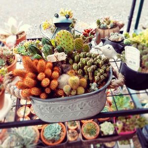 今日は3つの大きめ寄せ植えを 植え直しました🎵 そのうちの1つ サボテン(ユーフォルビア含)寄せです💕 ごちゃごちゃしてるけど 思ったより可愛いと思うの😆