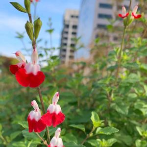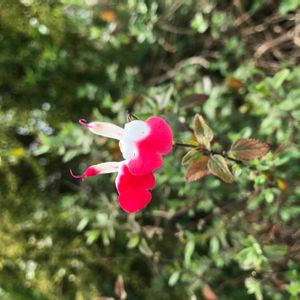 チェリーセージホットリップス 初めて聞いた花の名前💐 いつも歩く通りの、反対側を歩いたら見つけたお花🥰 同じ道でも反対側の通りを歩けば新しい発見があるんだなと感じました☻
