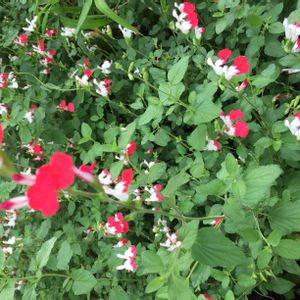 チェリーセージ ホットリップス 赤のチェリーセージに混じって少し育ったみたい💕💕