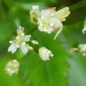 今朝、ふと見ると裏の庭に白い小いさな花が🎵 本当に小さな小さな2mmくらいでしょうか❔💕 近付いてアップにして撮ってみたら、( -_・)?なんか居る❔💕 体か足らしき白いものが👀‼️同じ色で良くわからないけど、一ヶ所茶色のところが⁉️👀‼️ お客さんがいますよね❔💕 クモ🕷️❔💕 ちょっと驚いた朝でした🎵